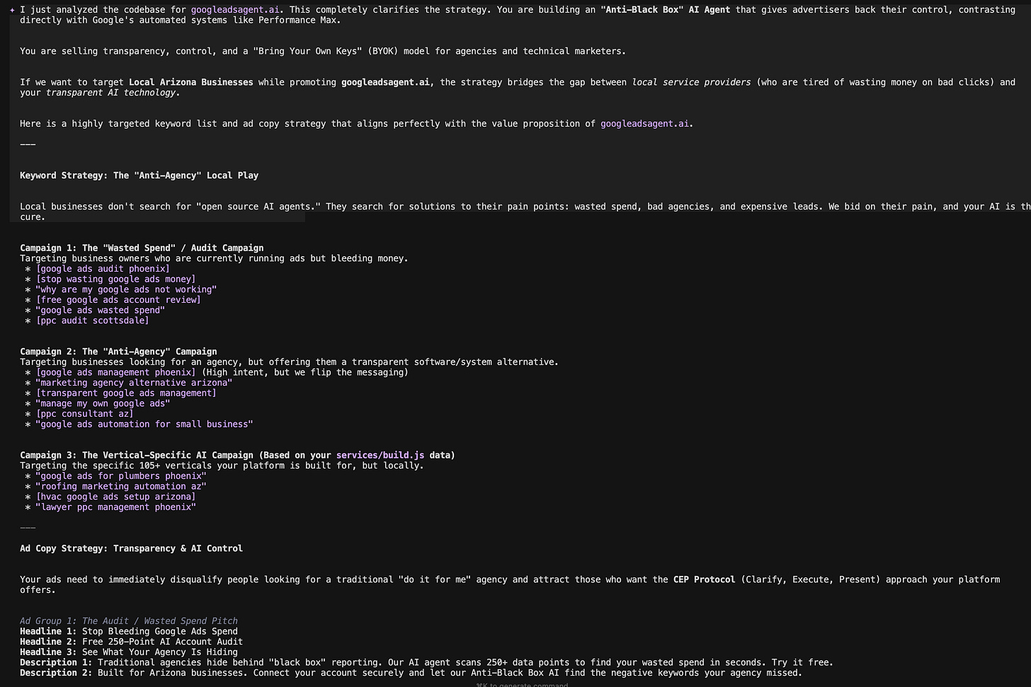The infrastructure for AI agents to do real work in Google Ads exists now. The MCP standard is here. The Gemini extension ecosystem just opened. Claude Code reads .mcp.json and CLAUDE.md automatically. The pieces fit together.